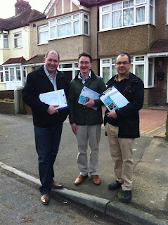 Cllr Tony Shields, Campaigner Jason Hughes and PPC Paul Scully out canvassing